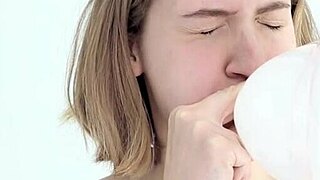 watch this young babe blow and pop her first balloon while giving a blowjob