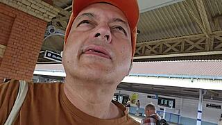 Risky public blowjob in Amsterdam airport toilets, facial finish!