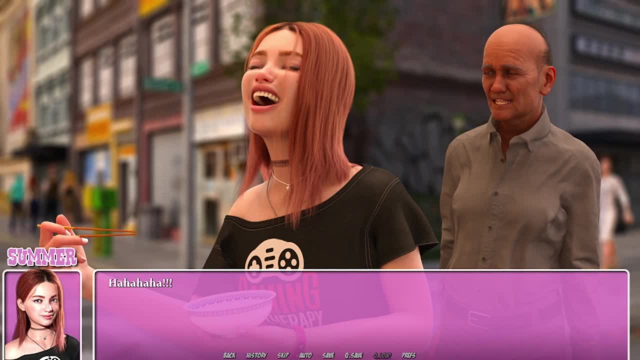 Petite Redhead Enjoys Ramen While Summer Heats Up in City