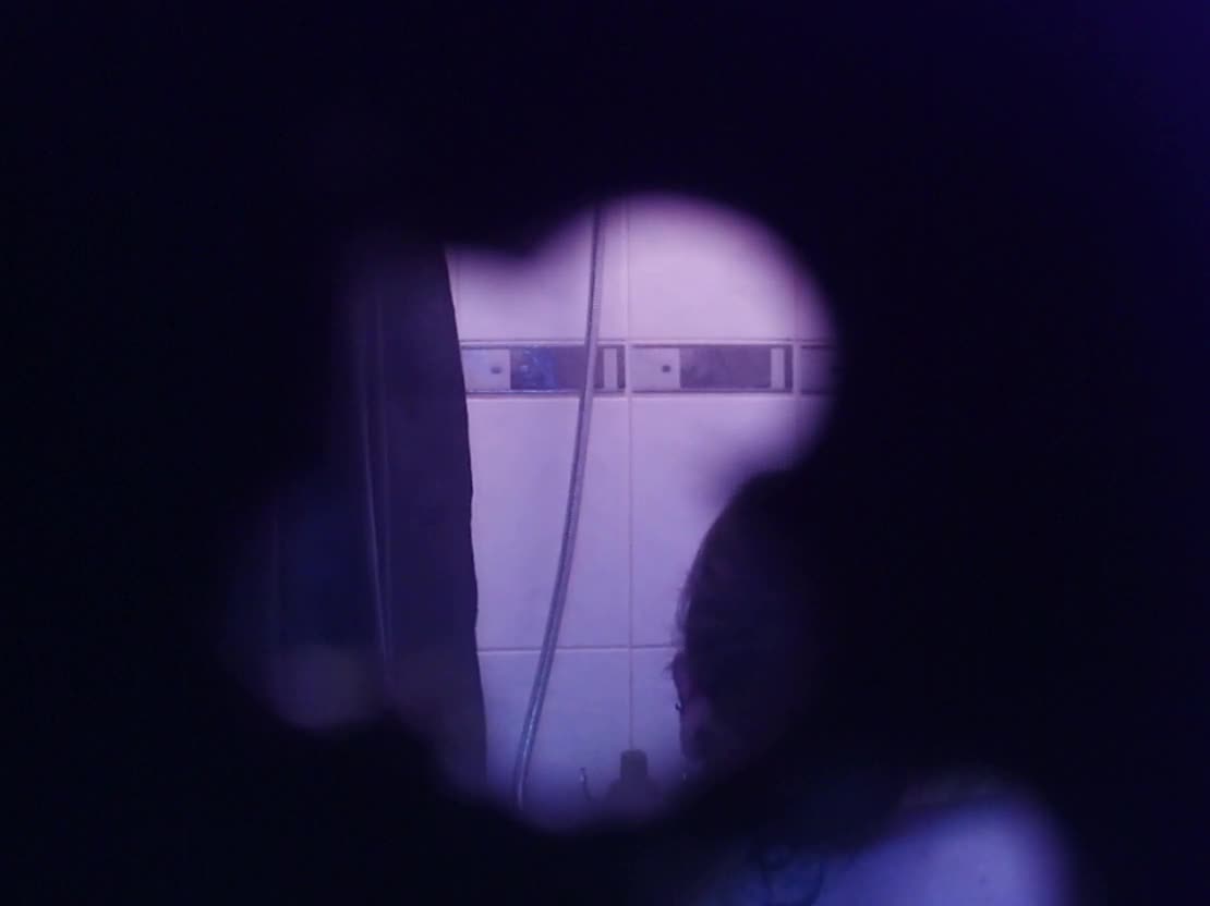 I watch this tattooed babe rip her clothes off while stripping in the shower, her body glistening under the water as she teases me with every move