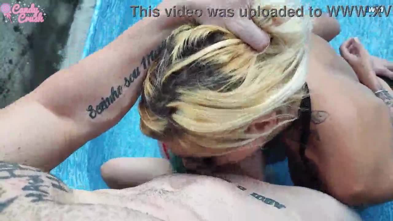 Candy and Russah enjoy a big cock threesome in the pool