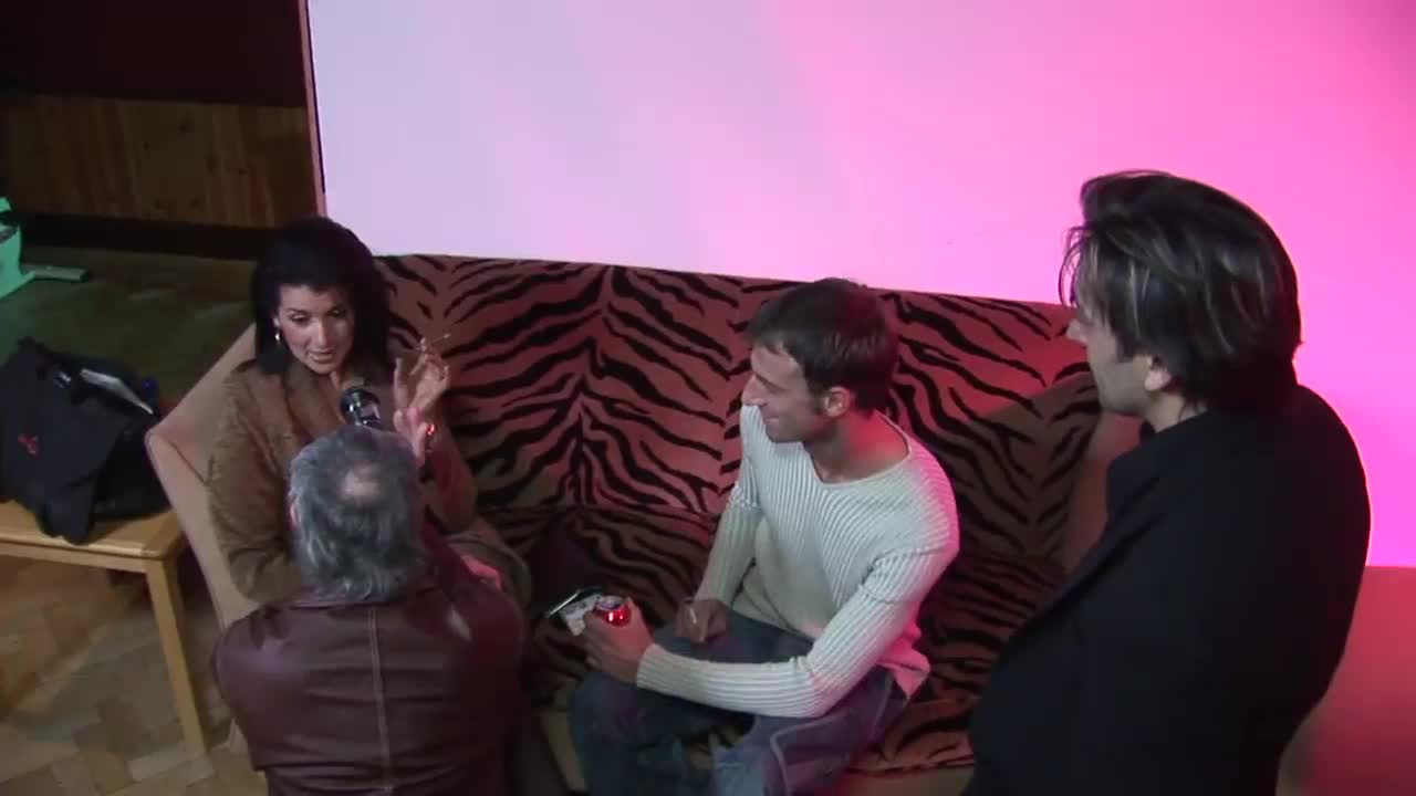 Brunette group slut gets facial cumshots.