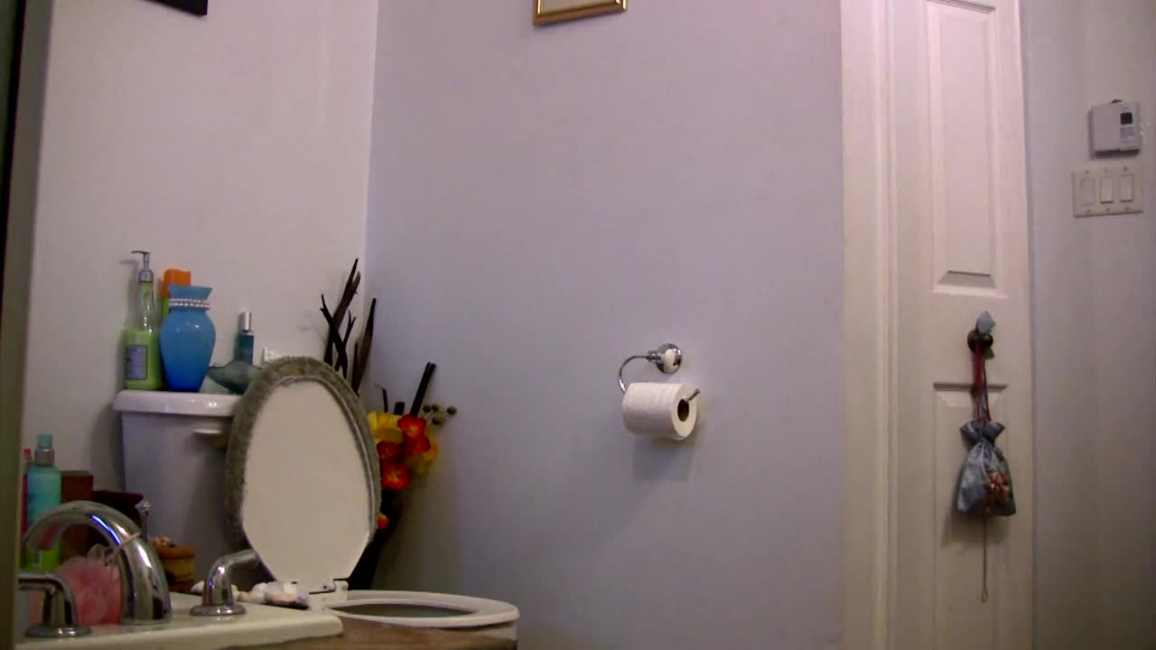 I watch this teen taking a piss on the toilet in the shower