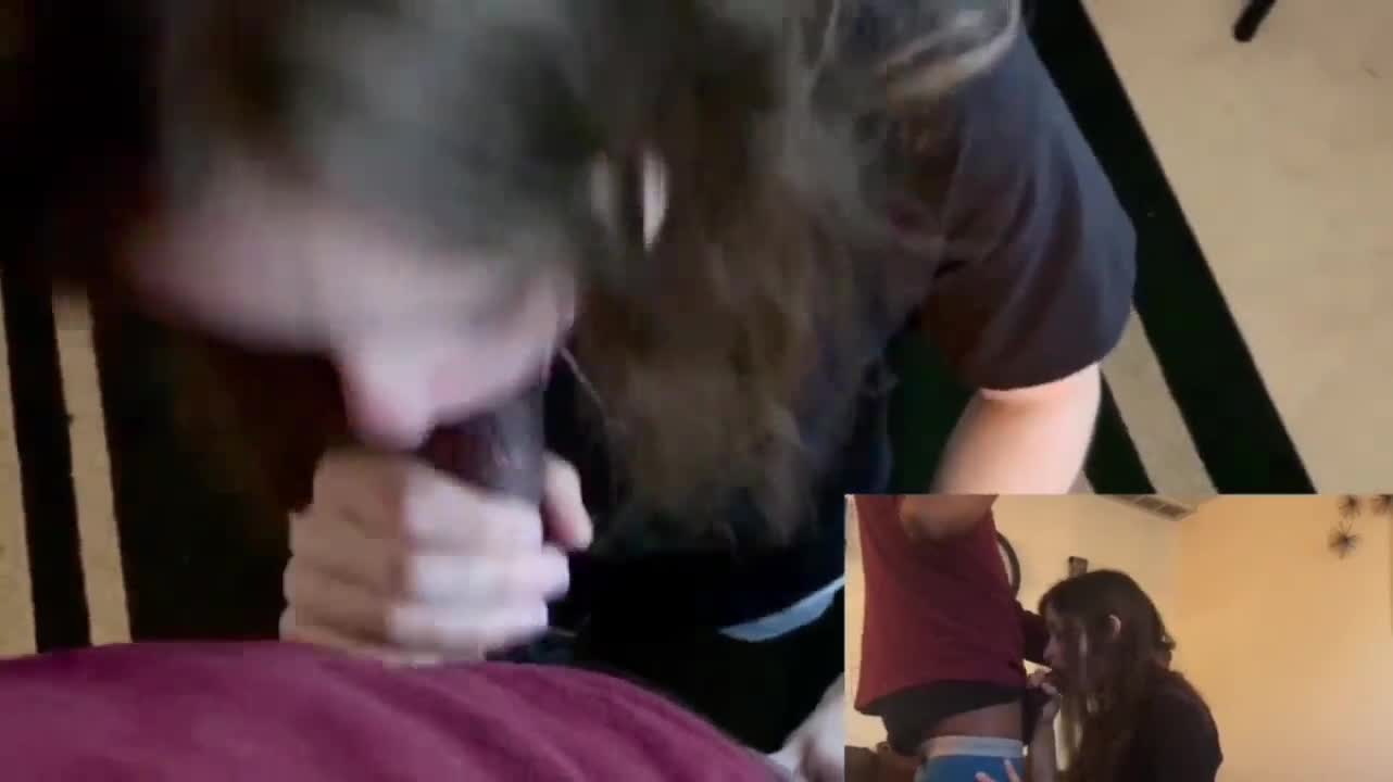 Beautiful brunette lesbian best friend gags on big cock while moaning and dirty talking for a place to stay