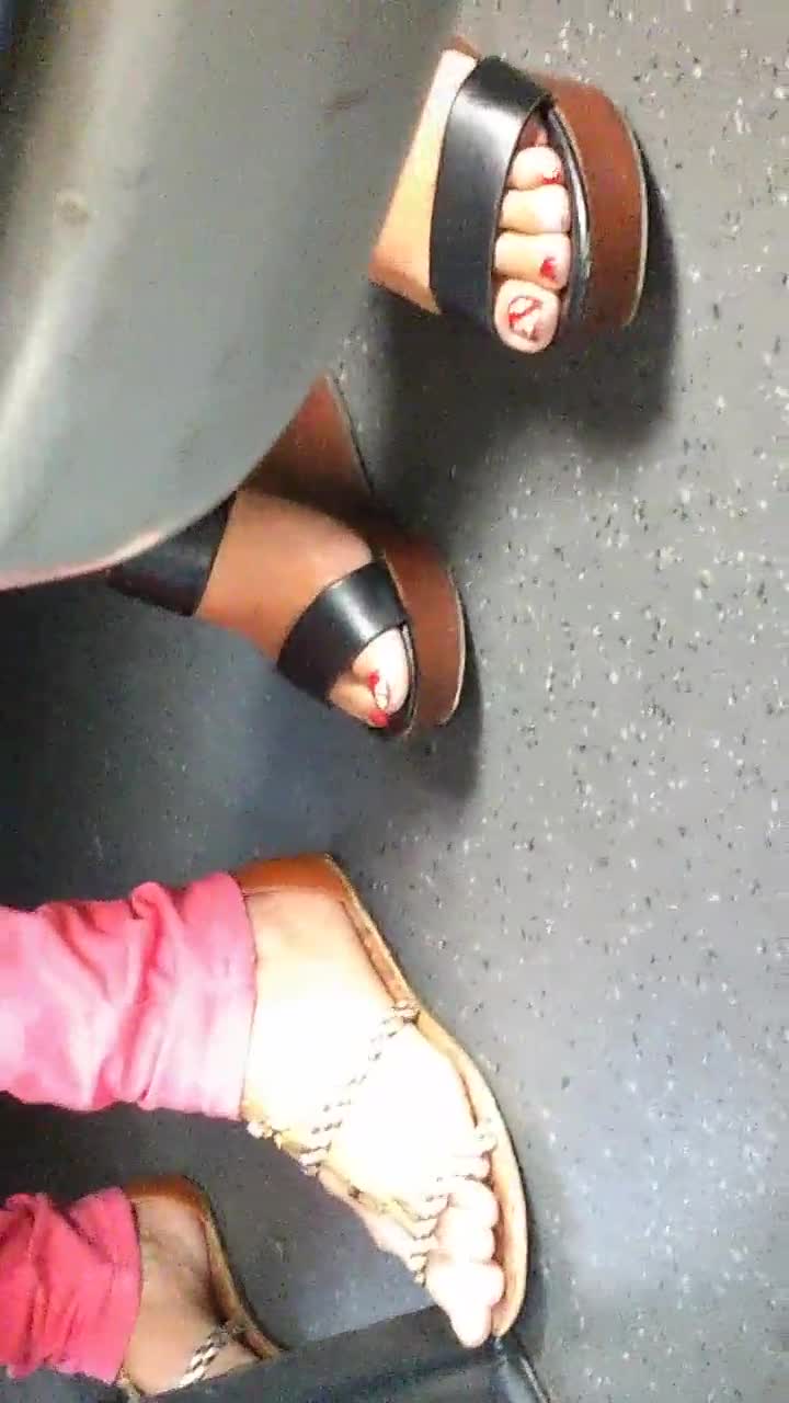 Mature feet candid shots in wedges and sandals
