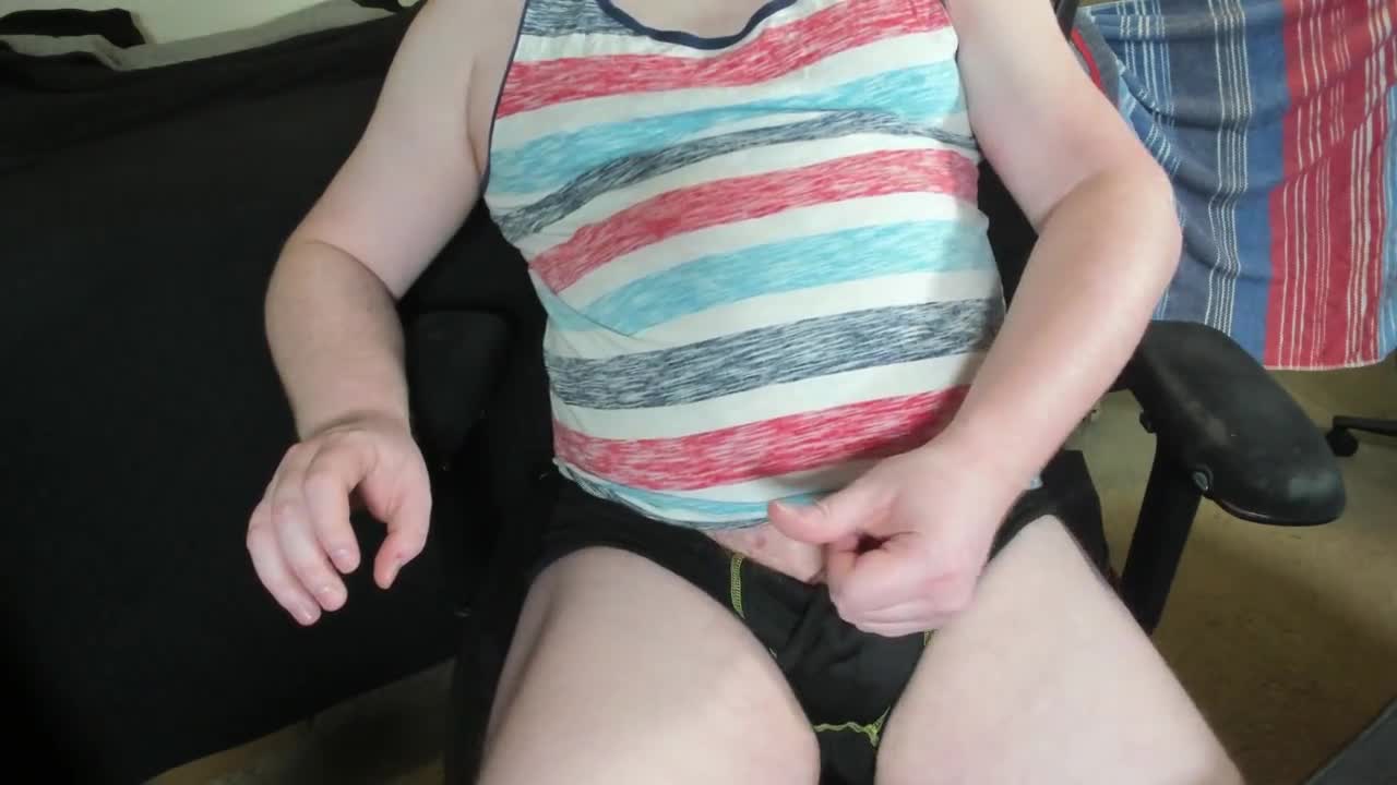 Redhead lubes up her monster cock to masturbate and edge, feeling so aroused