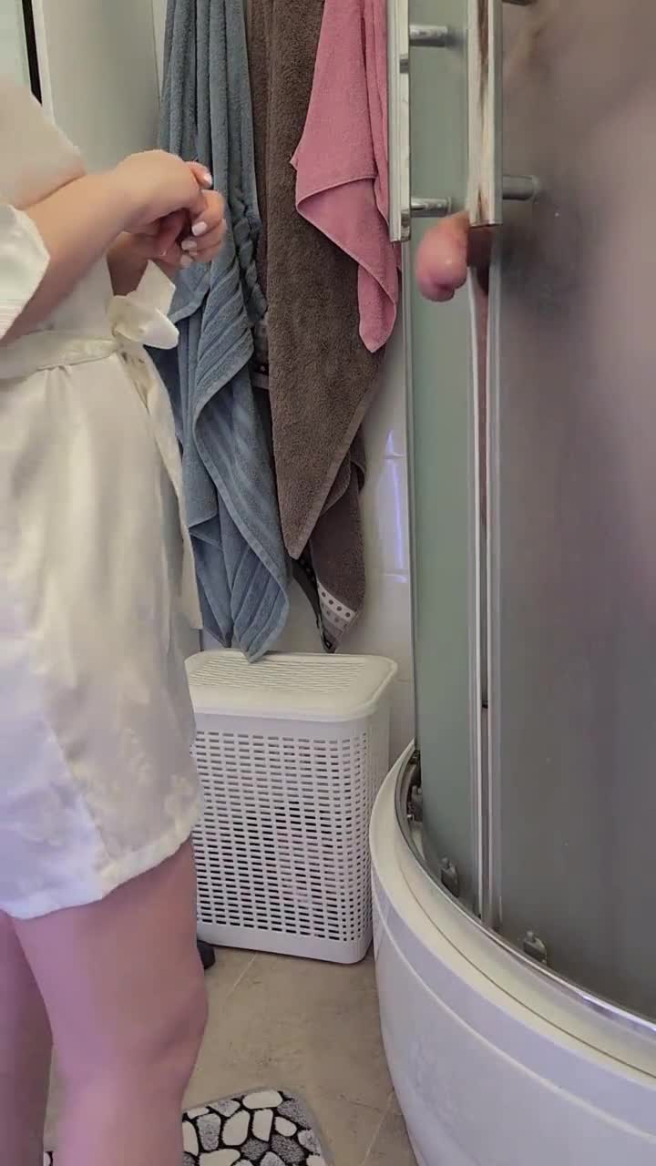 Stepmom helps son jerk off and cum in bath
