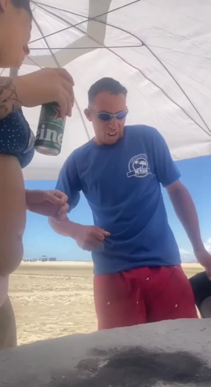 Hey stranger, want a blowjob on this nude beach? We got caught but kept going!