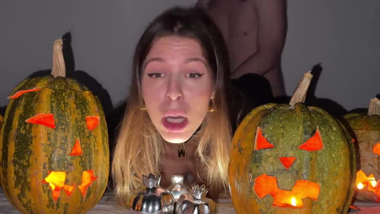 AMATEUR COUPLE'S HALLOWEEN SQUIRT! BIG TITS MILF DEEPTHROATS AND RIDES TO FACIAL CUMSHOT!