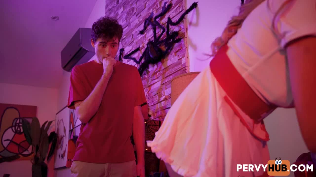 Feeling Trapped With Teen Stepsister And Her Hot BFF During Halloween Night