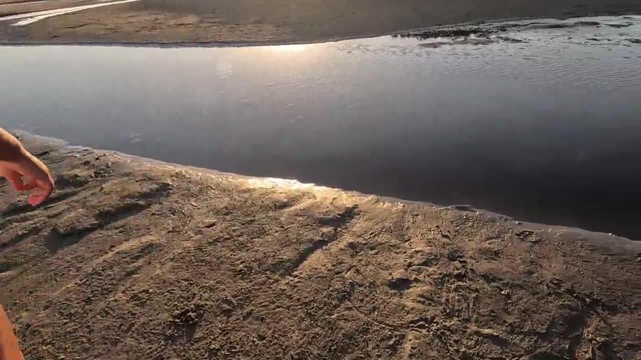 Intense public anal fuck on beach with spit and creampie in bent over doggystyle