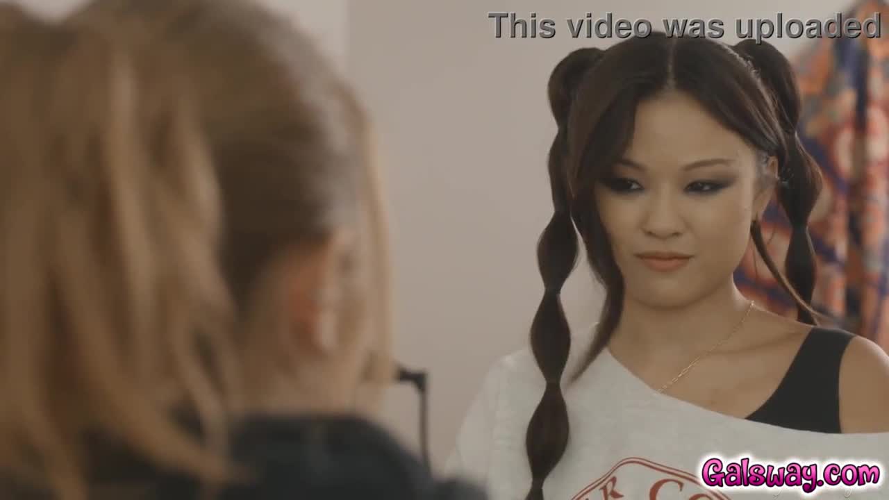 Lulu chu sneaks away from kissing to finger and trib with petite electra rayne intimately
