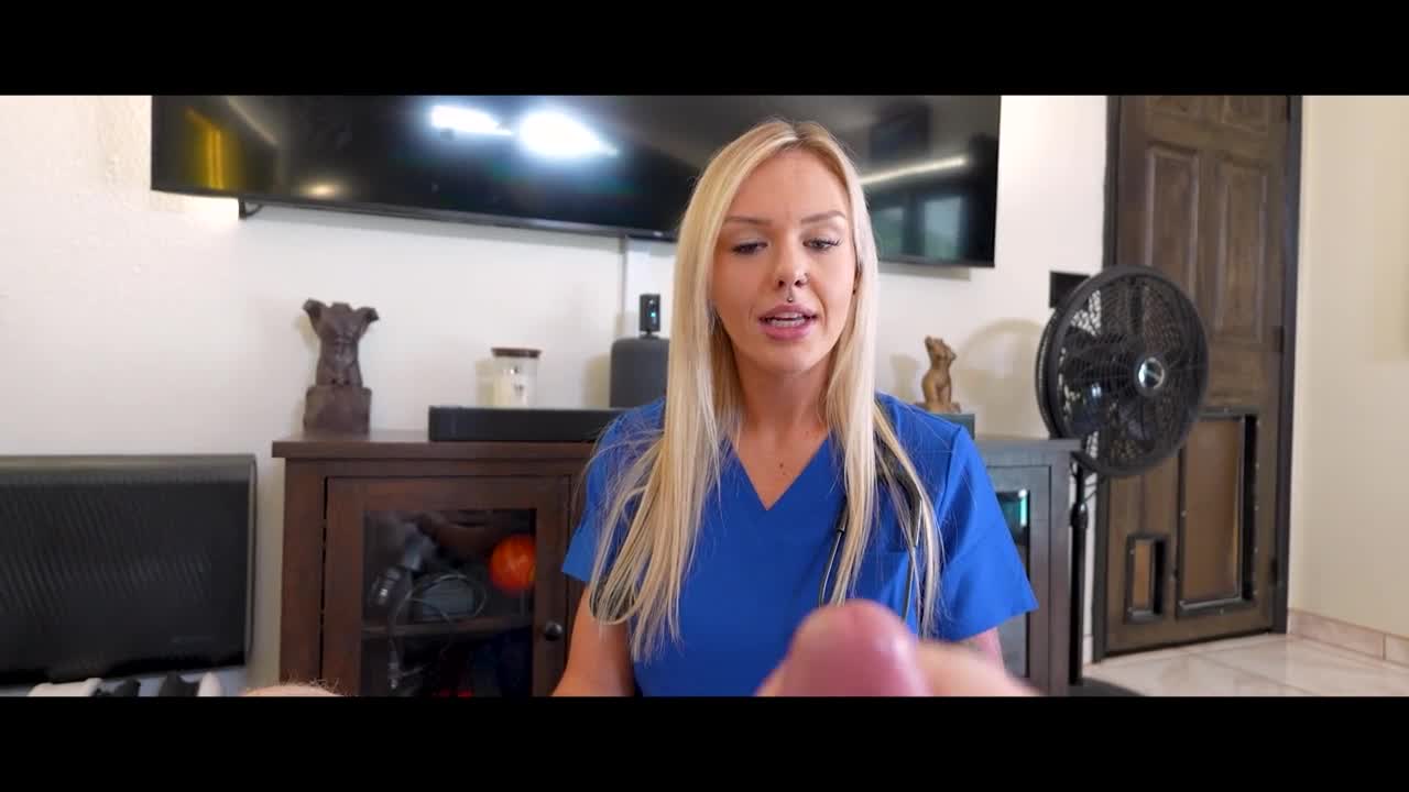 Redhead Tattooed Nurse Jerks Off Smalldick Dude in Hospital Setting with Humiliating Touches
