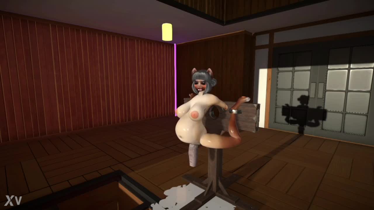 Furry cat dildoes pump up wild cum inflation