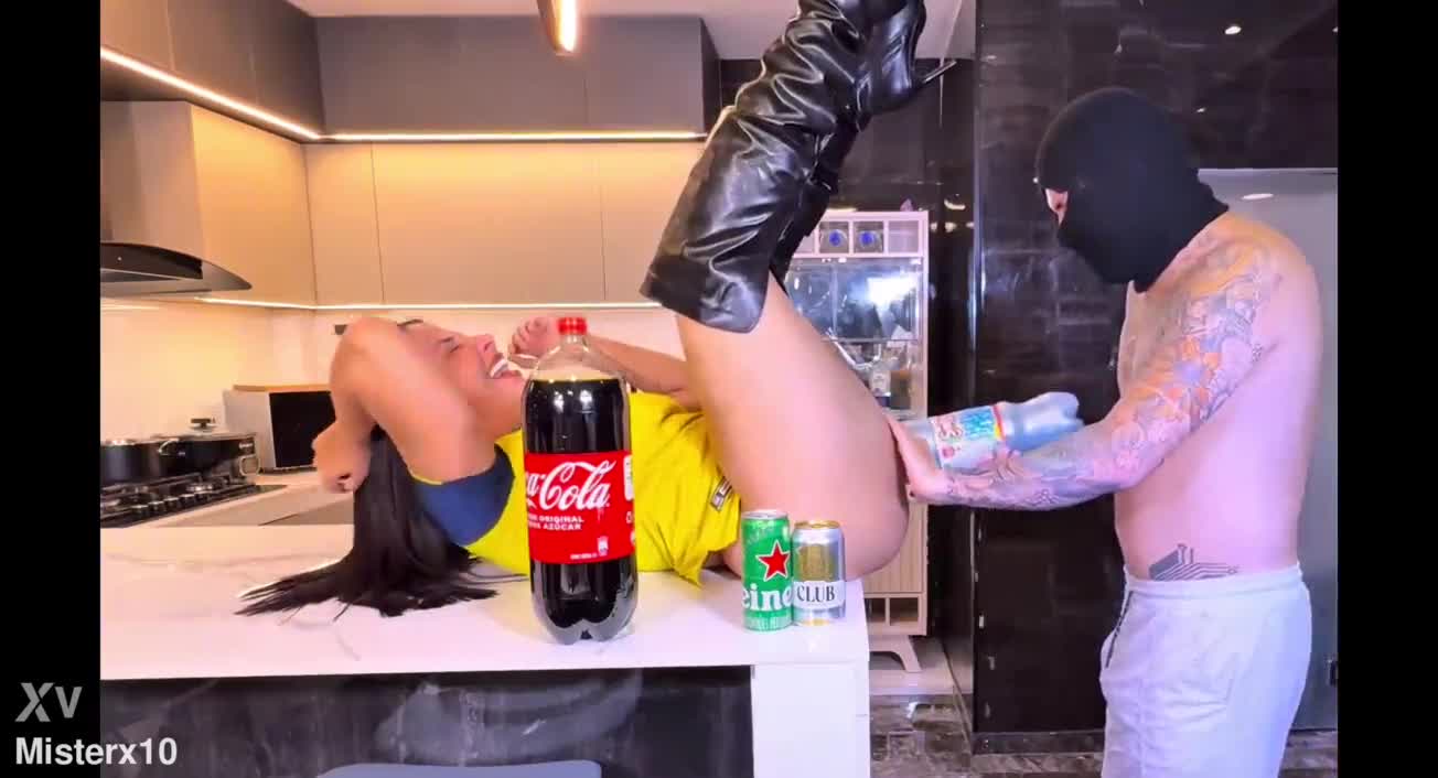 Luisa's panty-sniffing fans beg for cola challenge ass fisting orgasm