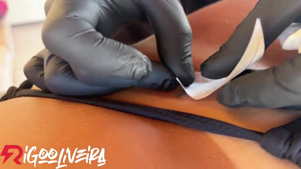 Blonde teen pays tattoo with her smooth tight pussy