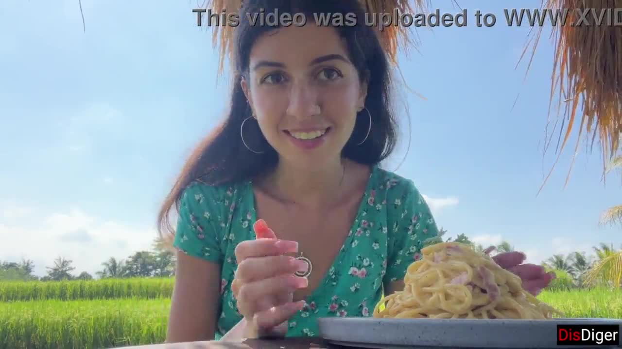 Cum dripping down my face while I slurp pasta publicly