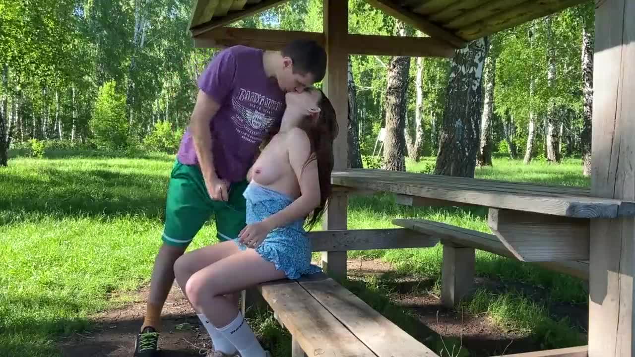 Beautiful submissive student fucked hard in woods, cum on tits left alone?